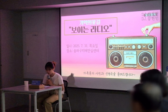 #1. “우리 남편 오늘도 파이팅! 집 나설 때 몇 월 며칠을 꼭 외우고 나가는, 함께 공부한 선생님의 성함과 모습을 기억하려 애쓰는 당신을 응원합니다. 힘든 과정 좌절하지 말고 꿋꿋하게 잘 버텨 나갑시다. 서로 의지하며 여생을 행복하게 살아갑시다. 열과 성을 다하는 치료사 선생님도 얼마나 고마운지요. 친절하게 가르쳐주고 상담해 주는 선생님들 덕에 편안하고 하루가 즐겁다고 합니다…”, “그동안 함께한 보호자님 정말 훌륭하십니다. 서로 위로해 주시고 격려해 주심에 감사드립니다” #2. “할머니, 저예요! 외국에서 자주 찾아뵙지 못해 죄송했는데, 이렇게 편지를 보내면 라디오에서 읽어주는 좋은 프로그램이 있다고 해서 할머니를 생각하며 편지를 써 봅니다. 밥도 많이 드시고 운동도 열심히 해서 항상 건강히 계셔주세요! 8월에 곧 만나요. 사랑해요!” 서울 송파구(구청장 서강석)가 지난 7월부터 운영 중인 <보이는 라디오-기억의 편지>가 치매 환자와 가족들에게 큰 호응을 얻고 있다. <보이는 라디오-기억의 편지>는 전국 유일 송파구보건소 치매안심센터에서만 운영되는 프로그램으로, 관내 치매 환자와 그 가족의 정서적 지원을 위해 구가 자체적으로 기획했