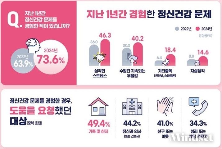 "지난 1년간 정신건강 문제 경험한 적 있다" 응답률 '73.6%'
