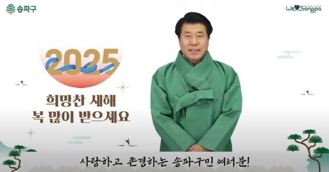 특히 "송파구민 한 분 한 분의 가정에 늘 건강과 행복이 함께 하시기를 기원드린다"며 구민들의 행복한 한 해를 기원했다.